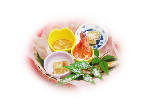 季節を少し先取りした食材や一般にはなかなか入手困難な食材を使い、料理人が竹籠の中に季節を演出します。中には馴染みにない料理もございますが、まずは一箸付けてみてください。